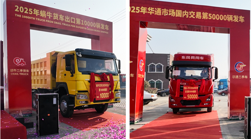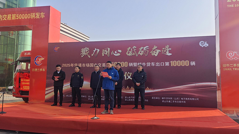 On December 28, 2025, a landmark ceremony was successfully held at Liangshan Huatong Used Truck Market, celebrating the 50,000th domestic commercial truck transaction and the 10,000th export shipment completed by Snail Truck. This milestone event marked a significant step forward for China’s used commercial truck trading and export industry.