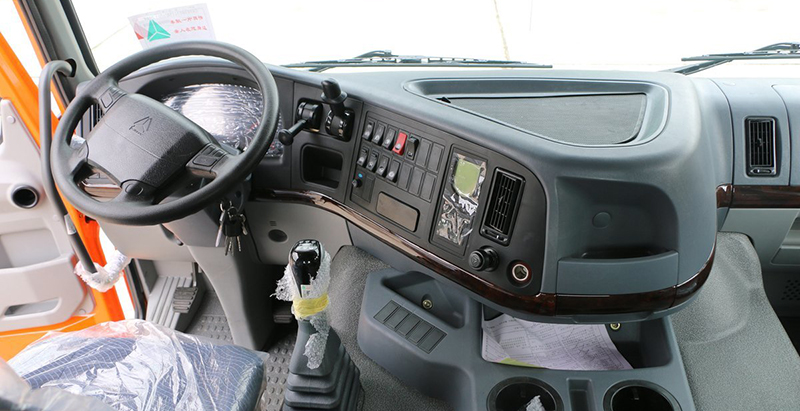 One of the biggest improvements in the new HOWO dump truck cabs is enhanced comfort. The seats are ergonomically designed with multi-level adjustments, improved cushioning, and air-suspension options that help reduce driver fatigue on rough terrain. The cabin is more spacious, allowing drivers to move freely, and the upgraded air-conditioning system ensures stable cooling even in extremely hot regions such as Africa or the Middle East. Low-noise insulation materials are also used throughout the cab, creating a quieter and more relaxing driving environment.